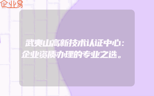 - 武夷山高新技术认证中心:企业资质办理的专业之选。