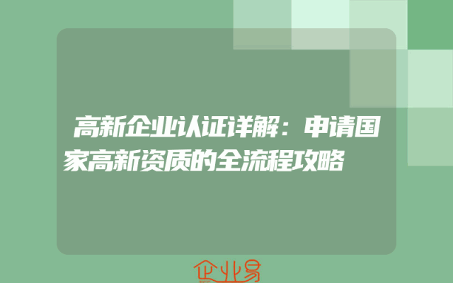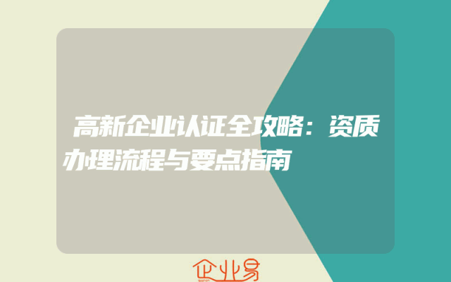 - 高新企业认证全攻略:资质办理流程与要点指南