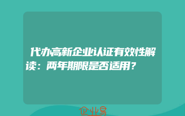 - 代办高新企业认证有效性解读:两年期限是否适用?