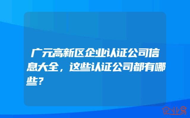 - 广元高新区企业认证公司信息大全,这些认证公司都有哪些?