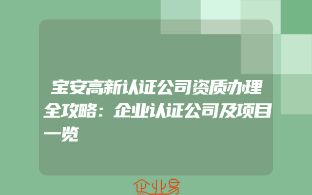 - 宝安高新认证公司资质办理全攻略:企业认证公司及项目一览