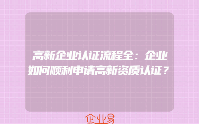 - 高新企业认证流程全:企业如何顺利申请高新资质认证?