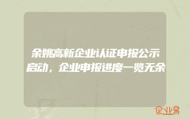 - 余姚高新企业认证申报公示启动,企业申报进度一览无余