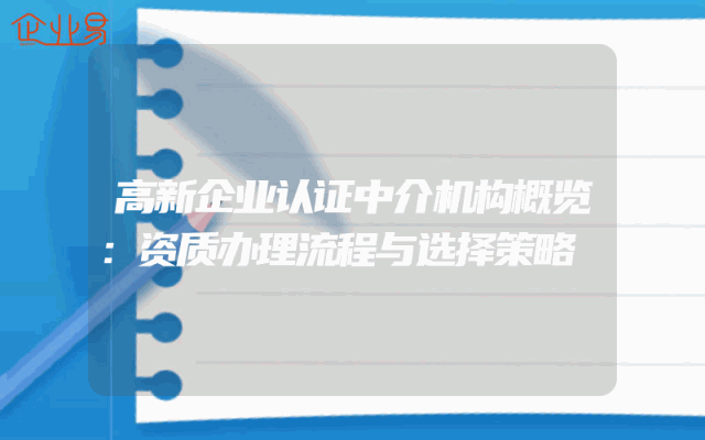 - 高新企业认证中介机构概览:资质办理流程与选择策略