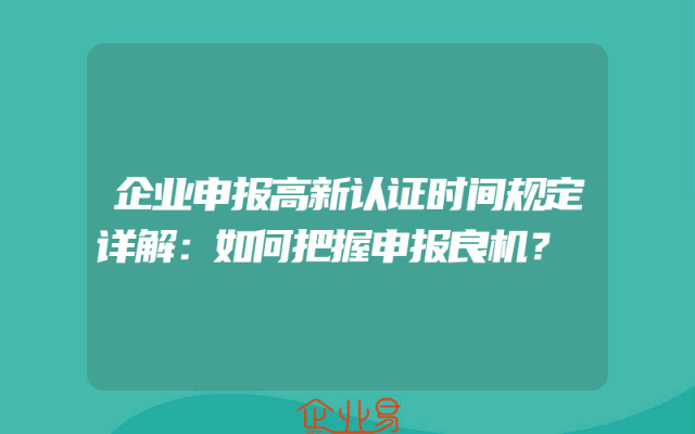 - 企业申报高新认证时间规定详解:如何把握申报良机?