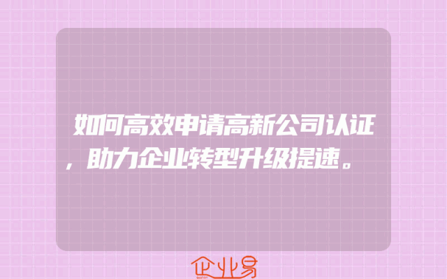 - 如何高效申请高新公司认证,助力企业转型升级提速。