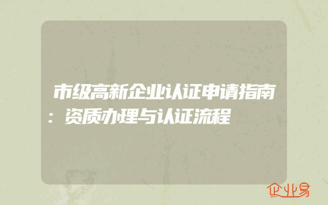 - 市级高新企业认证申请指南:资质办理与认证流程
