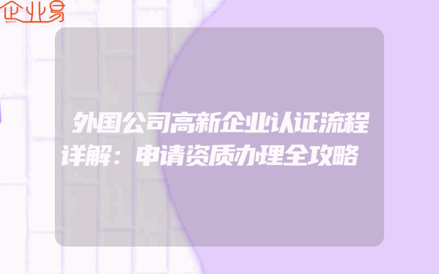 - 外国公司高新企业认证流程详解:申请资质办理全攻略