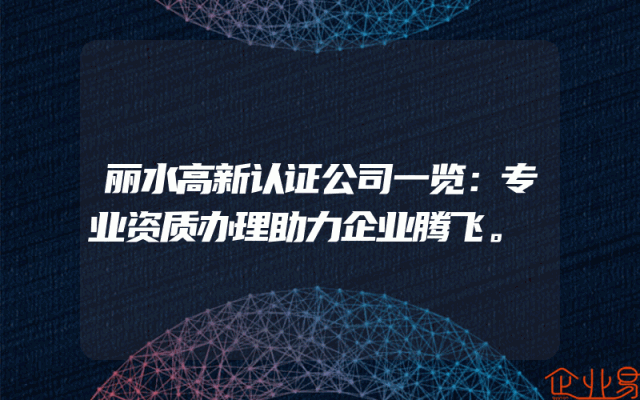 - 丽水高新认证公司一览:专业资质办理助力企业腾飞。