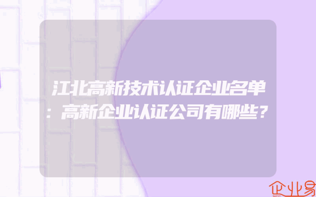 - 江北高新技术认证企业名单:高新企业认证公司有哪些?