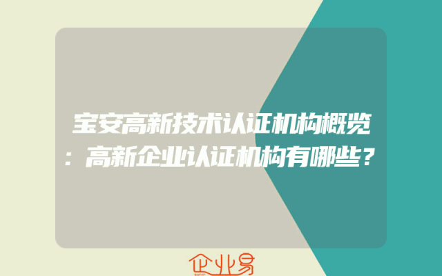 - 宝安高新技术认证机构概览:高新企业认证机构有哪些?