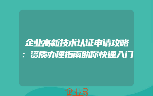 - 企业高新技术认证申请攻略:资质办理指南助你快速入门