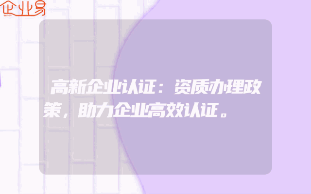 - 高新企业认证:解析资质办理政策,助力企业高效认证一、高新企业认证的重要性在当今竞争激烈的市场环境下,高新企业认证成为企业提升竞争力的重要途径。高新企业认证不仅能够提高企业的市场信誉度,还可以享受政策优惠和资金支持。因此,了解高新企业认证的资