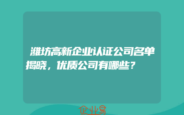 - 潍坊高新企业认证公司名单揭晓,优质公司有哪些?