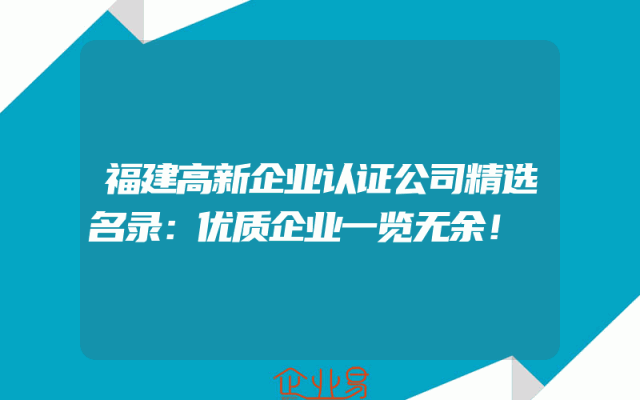 - 福建高新企业认证公司精选名录:优质企业一览无余!