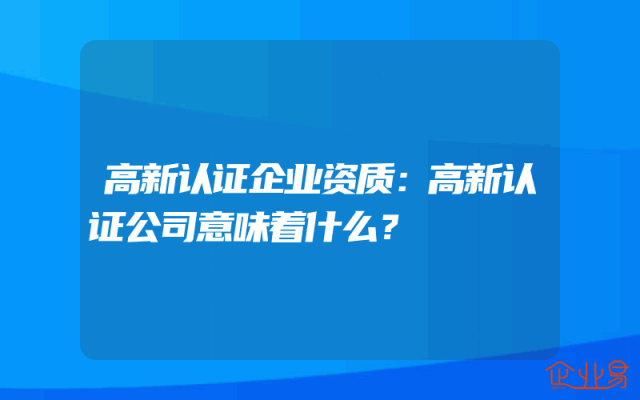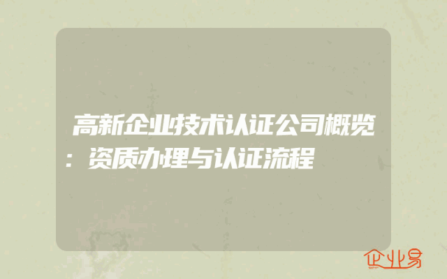 - 高新认证企业资质:高新认证公司意味着什么?