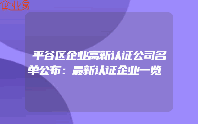 - 平谷区企业高新认证公司名单公布:最新认证企业一览