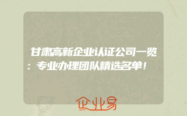- 甘肃高新企业认证公司一览:专业办理团队精选名单!