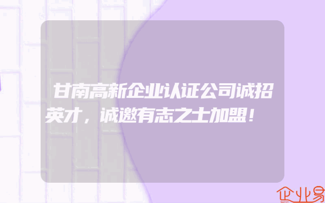 - 甘南高新企业认证公司诚招英才,诚邀有志之士加盟!