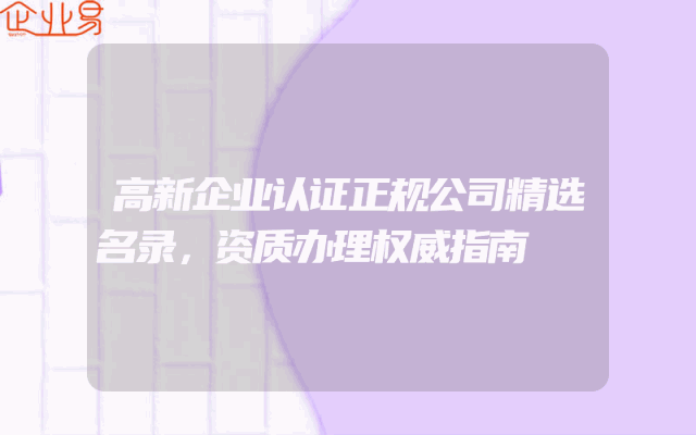 - 高新企业认证正规公司精选名录,资质办理权威指南