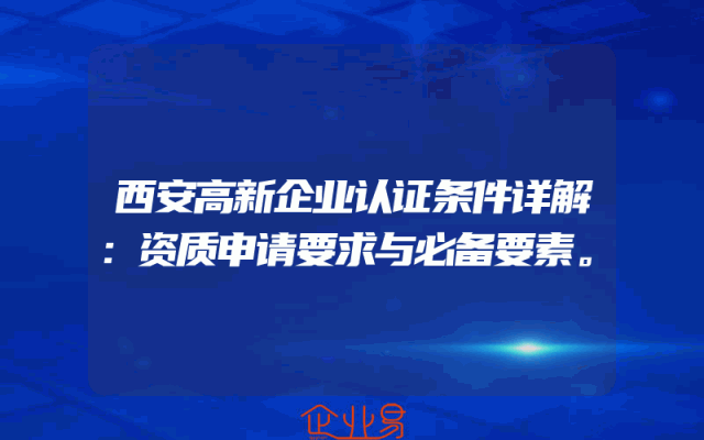 - 西安高新企业认证条件详解:资质申请要求与必备要素。