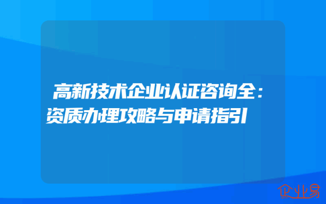 - 高新技术企业认证咨询全:资质办理攻略与申请指引