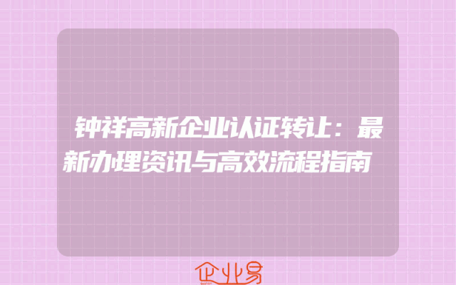 - 钟祥高新企业认证转让:最新办理资讯与高效流程指南