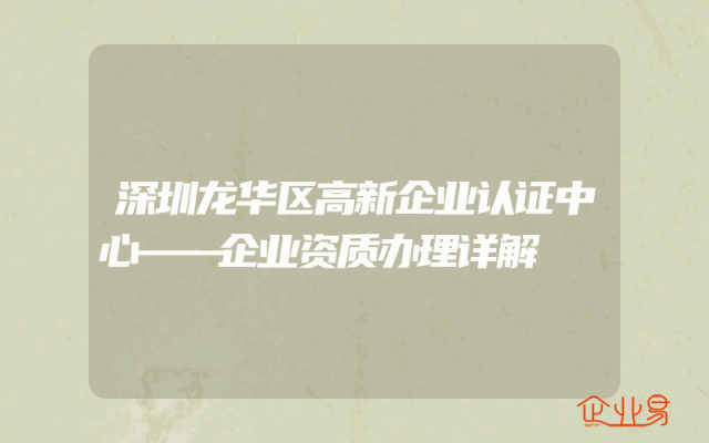 - 深圳龙华区高新企业认证中心——企业资质办理详解