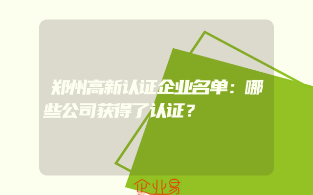 - 郑州高新认证企业名单:哪些公司获得了认证?