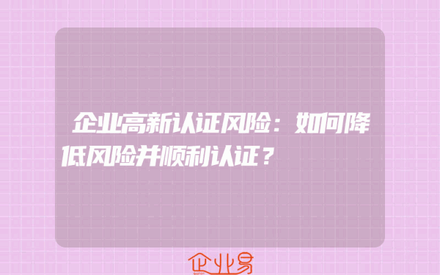 - 企业高新认证风险:如何降低风险并顺利认证?