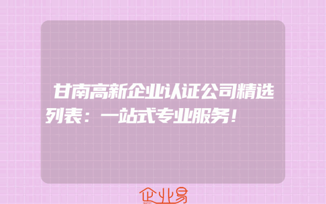 - 甘南高新企业认证公司精选列表:一站式专业服务!