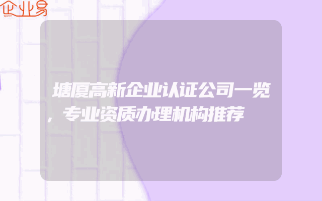 - 塘厦高新企业认证公司一览,专业资质办理机构推荐