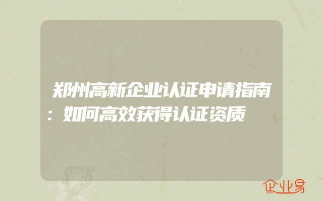 - 郑州高新企业认证申请指南:如何高效获得认证资质