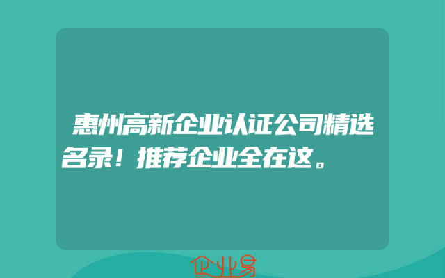 - 惠州高新企业认证公司精选名录!推荐企业全在这。