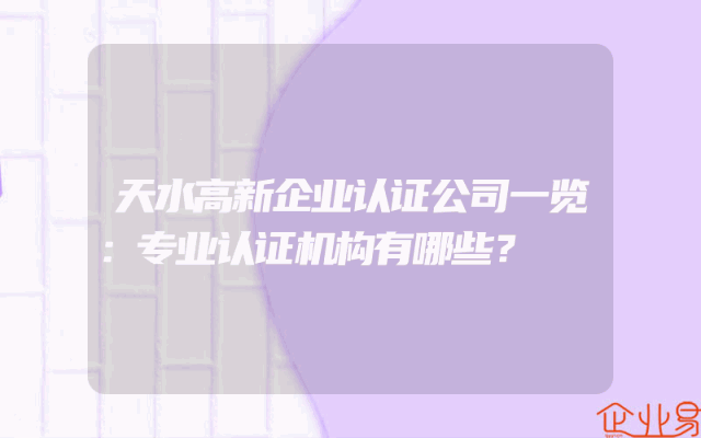 - 天水高新企业认证公司一览:专业认证机构有哪些?