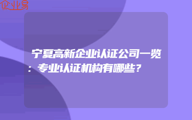 - 宁夏高新企业认证公司一览:专业认证机构有哪些?