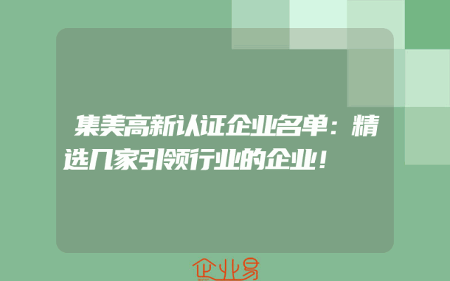 - 集美高新认证企业名单:精选几家引领行业的企业!
