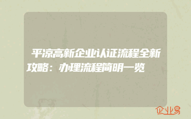 - 平凉高新企业认证流程全新攻略:办理流程简明一览