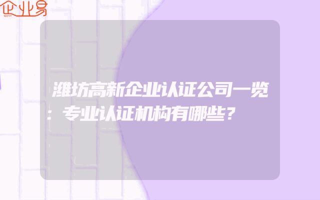 - 潍坊高新企业认证公司一览:专业认证机构有哪些?