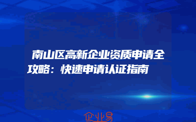 - 南山区高新企业资质申请全攻略:快速申请认证指南