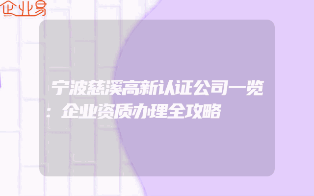 - 宁波慈溪高新认证公司一览:企业资质办理全攻略