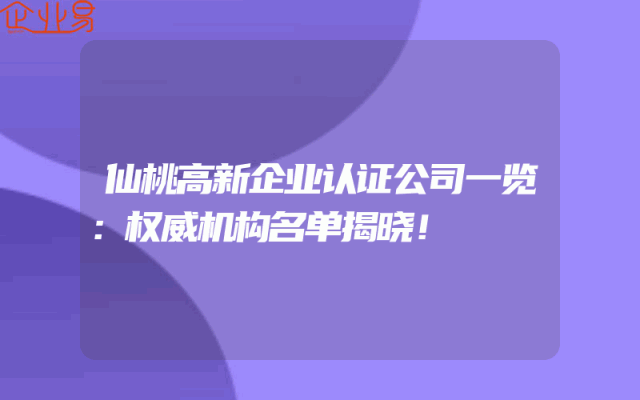 - 仙桃高新企业认证公司一览:权威机构名单揭晓!