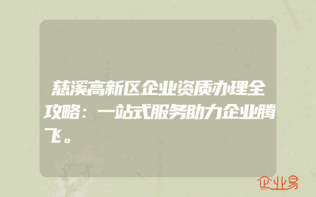 - 慈溪高新区企业资质办理全攻略:一站式服务助力企业腾飞。