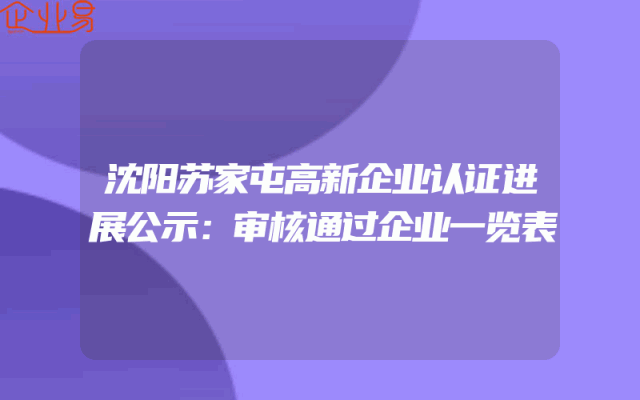 - 沈阳苏家屯高新企业认证进展公示:审核通过企业一览表