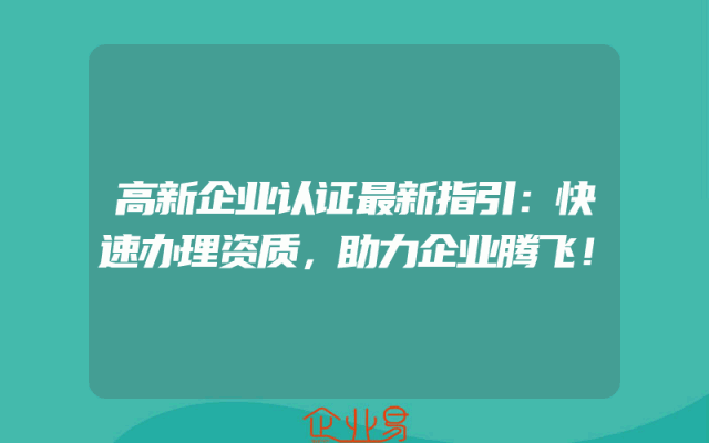 - 高新企业认证最新指引:快速办理资质,助力企业腾飞!