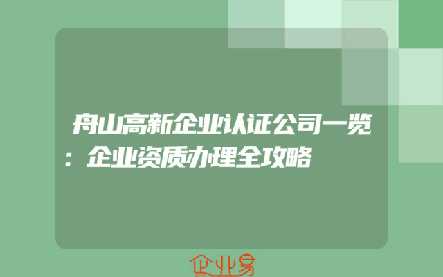 - 舟山高新企业认证公司一览:企业资质办理全攻略