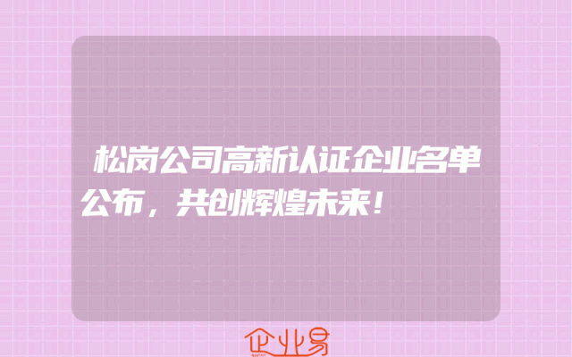 - 松岗公司高新认证企业名单公布,共创辉煌未来!