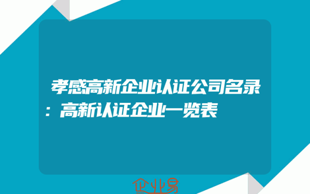 - 孝感高新企业认证公司名录:高新认证企业一览表