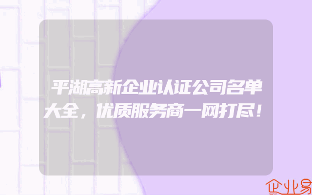 - 平湖高新企业认证公司名单大全,优质服务商一网打尽!