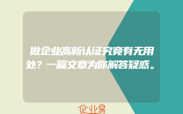 - 做企业高新认证究竟有无用处?一篇文章为你解答疑惑。